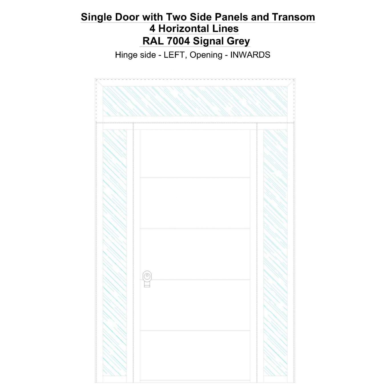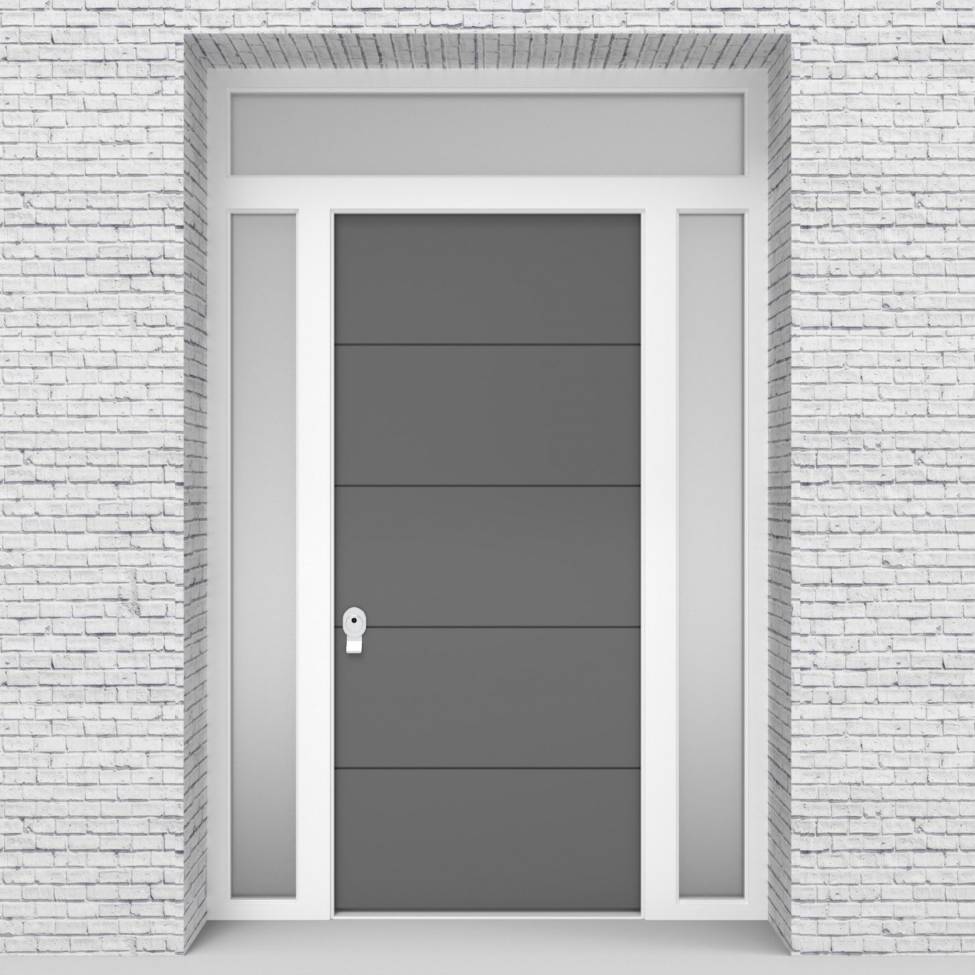 Single Door with Two Side Panels and Transom 4 Horizontal Lines Signal Grey Security Doors