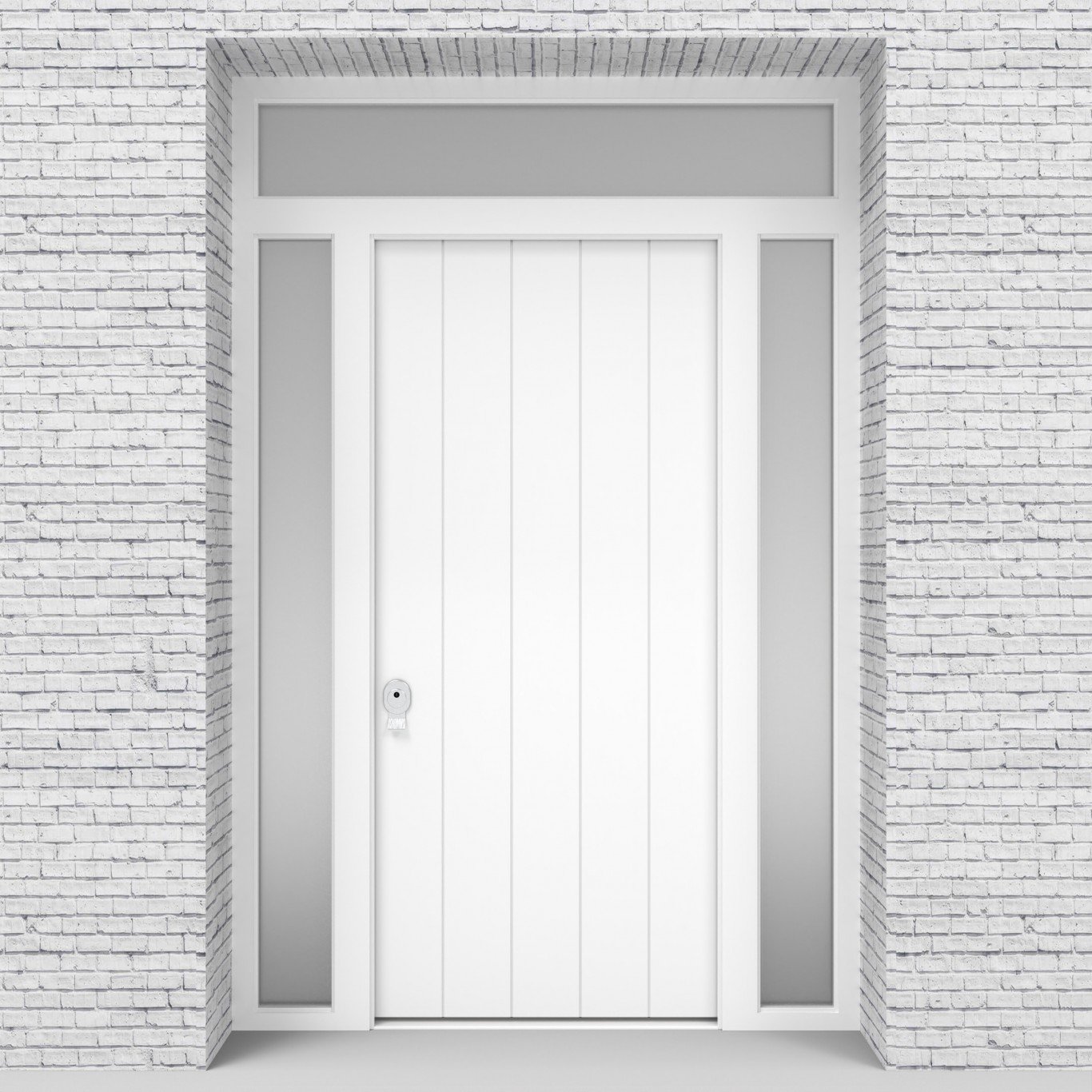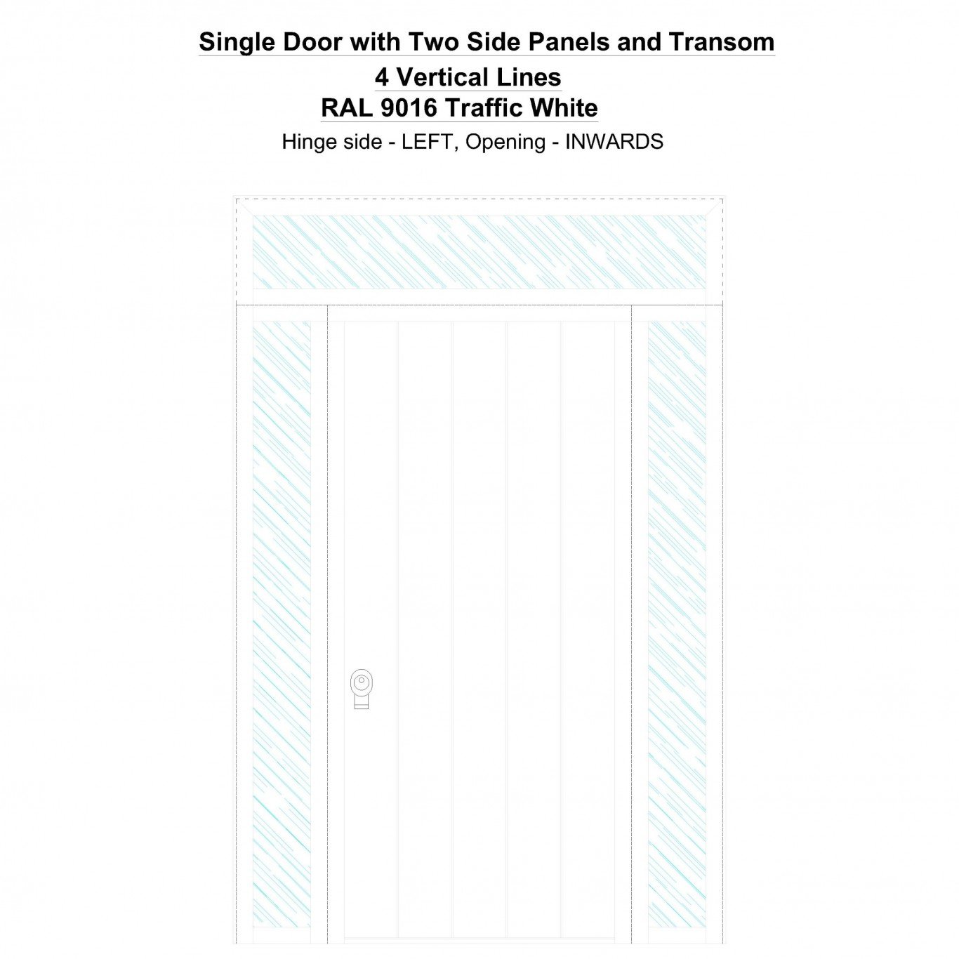Single Door with Two Side Panels and Transom 4 Vertical Lines Traffic White Security Doors
