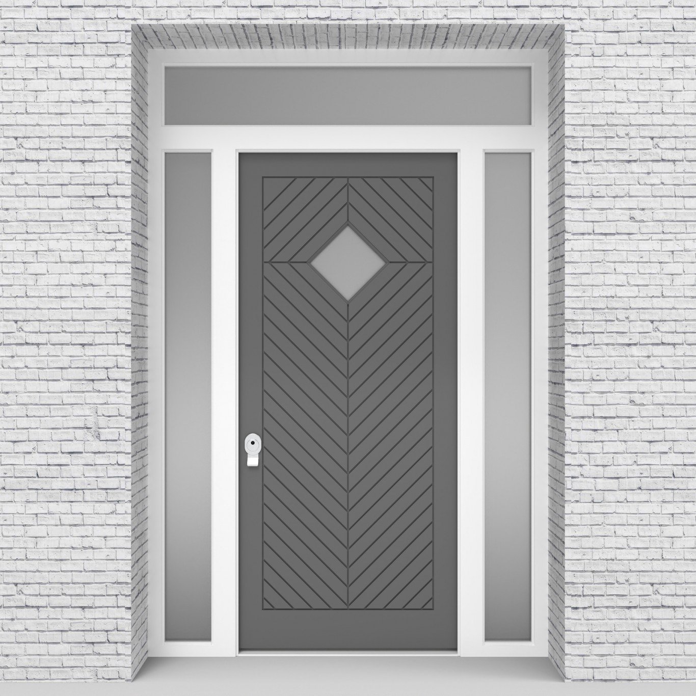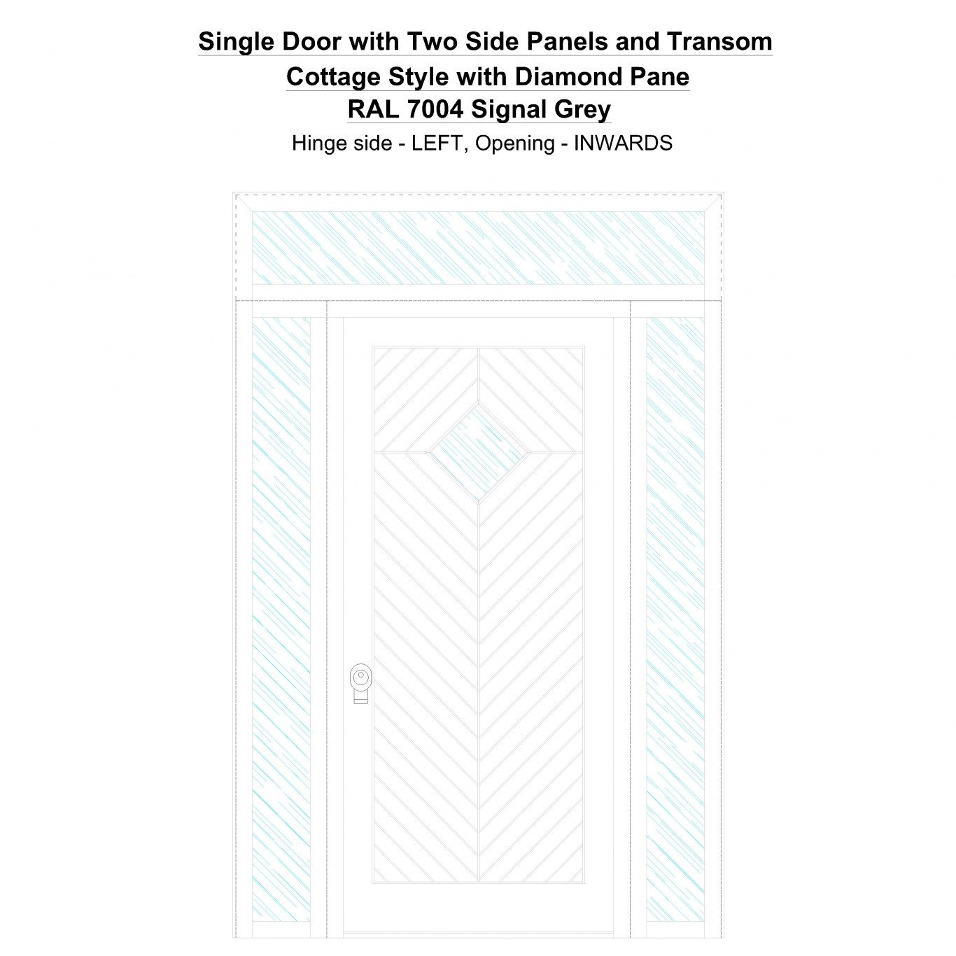 Single Door with Two Side Panels and Transom Cottage Style with Diamond Pane Signal Grey Security Doors
