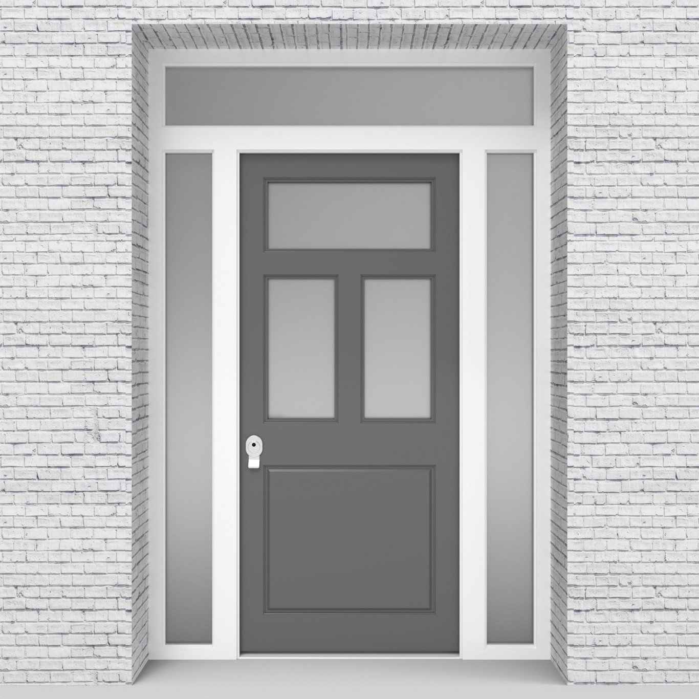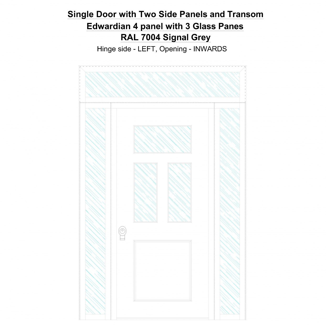 Single Door with Two Side Panels and Transom Edwardian 4 panel with 3 Glass Panes Signal Grey Security Doors
