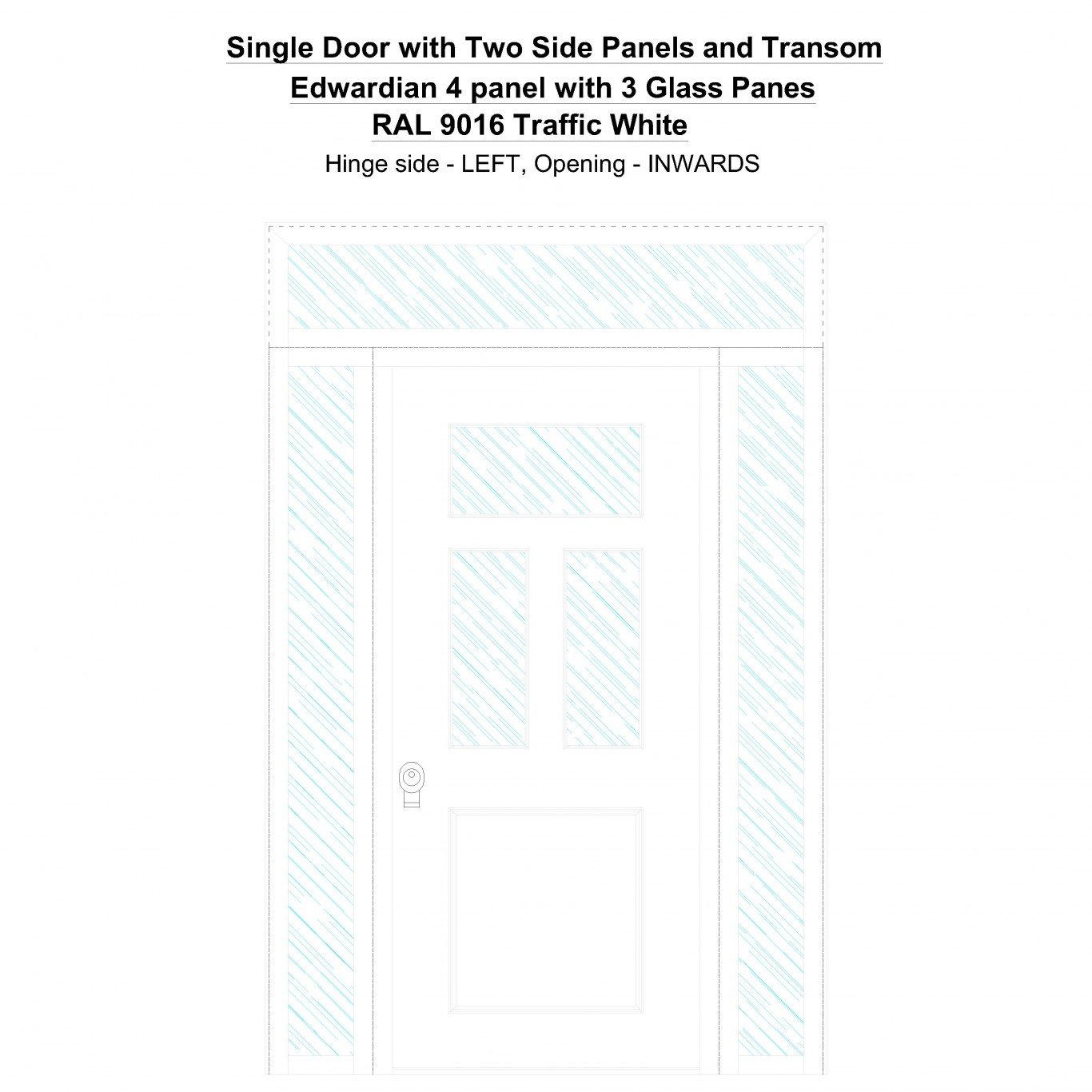 Single Door with Two Side Panels and Transom Edwardian 4 panel with 3 Glass Panes Traffic White Security Doors