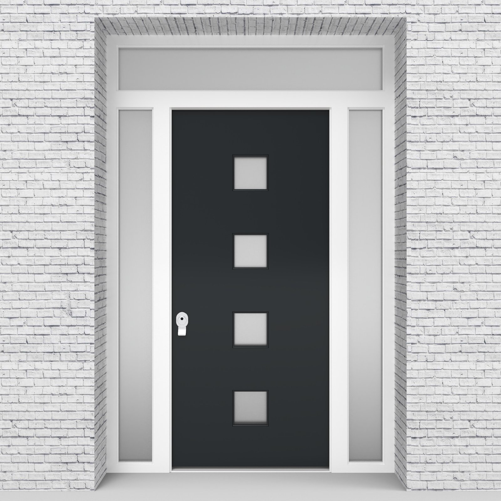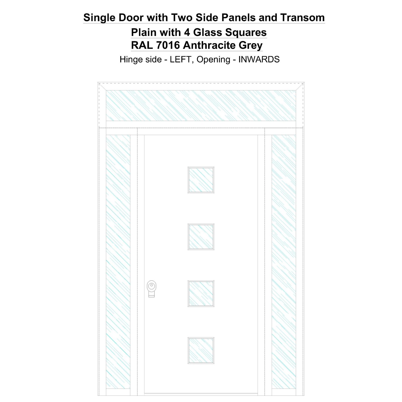 Single Door with Two Side Panels and Transom Plain with 4 Glass Squares Anthracite Grey Security Doors