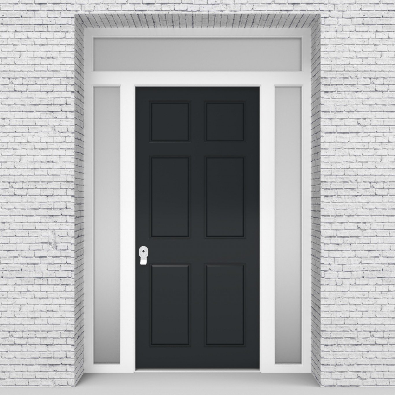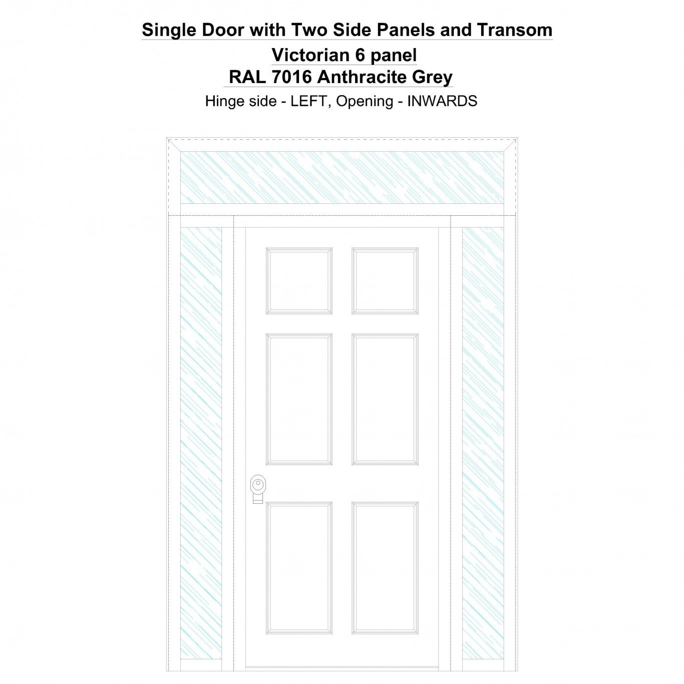 Single Door with Two Side Panels and Transom Victorian 6 panel Anthracite Grey Security Doors