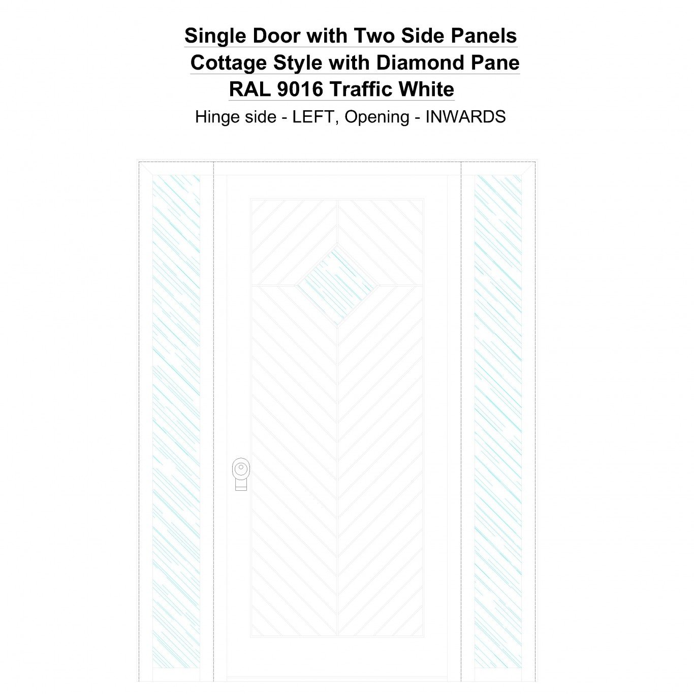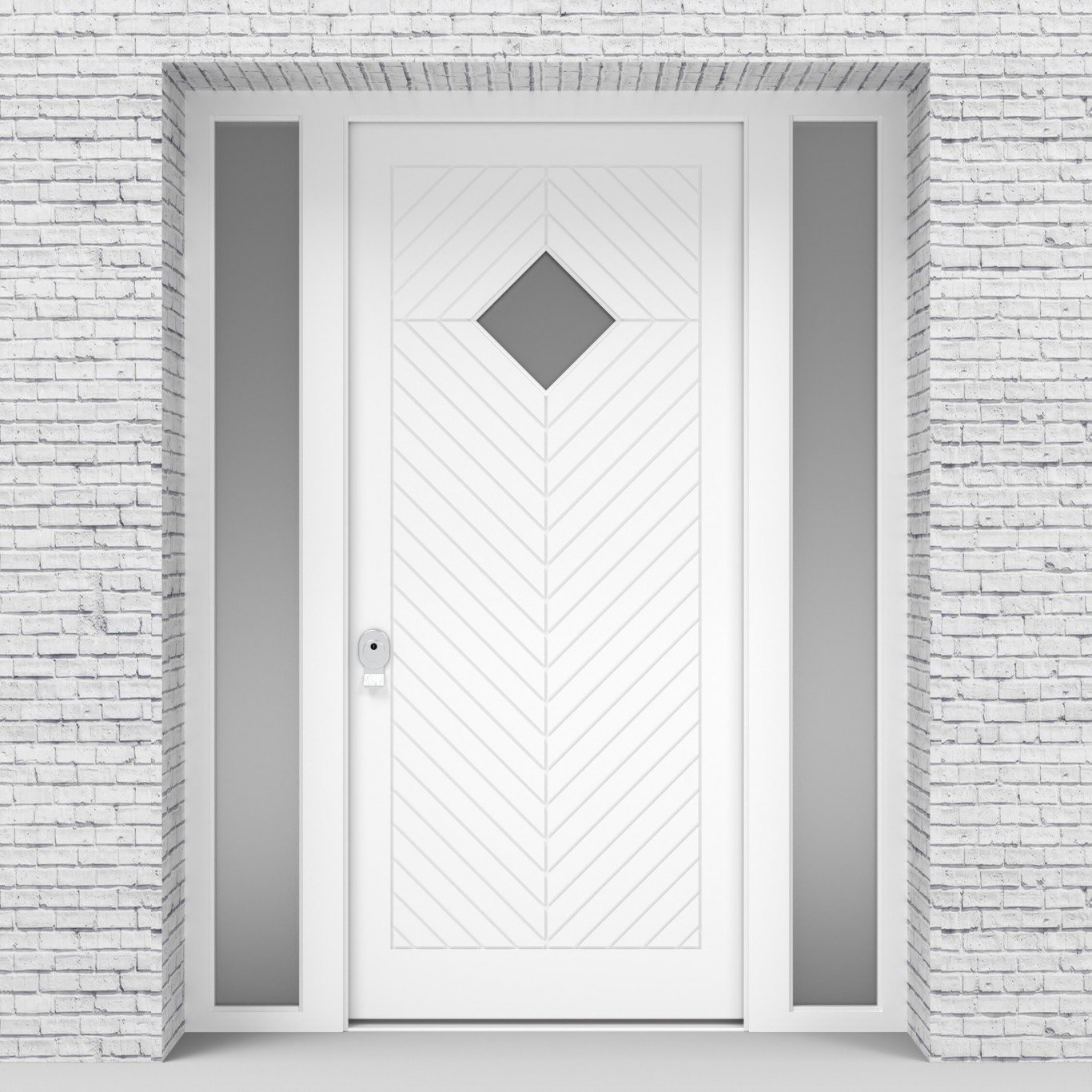 Single Door with Two Side Panels Cottage Style with Diamond Pane Traffic White Security Doors