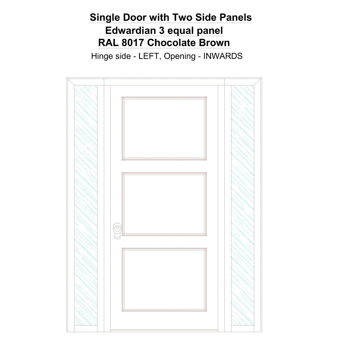 Single Door with Two Side Panels Edwardian 3 equal panel Chocolate Brown Security Doors