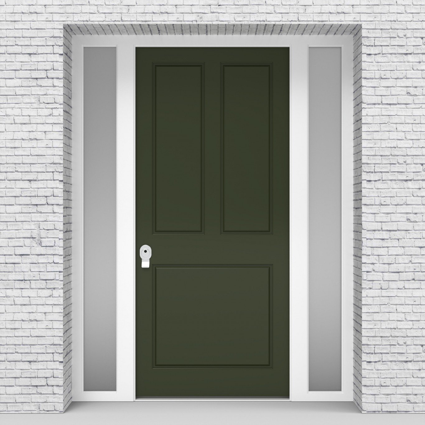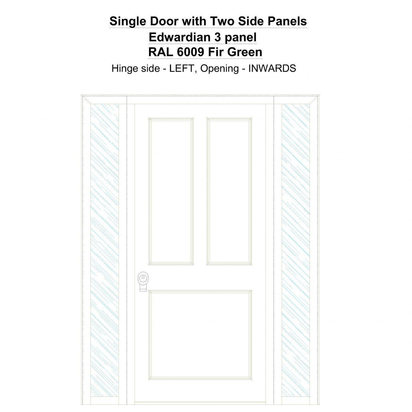 Single Door with Two Side Panels Edwardian 3 panel Fir Green Security Doors