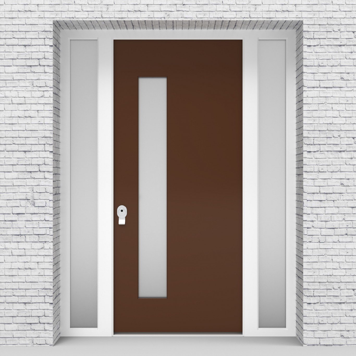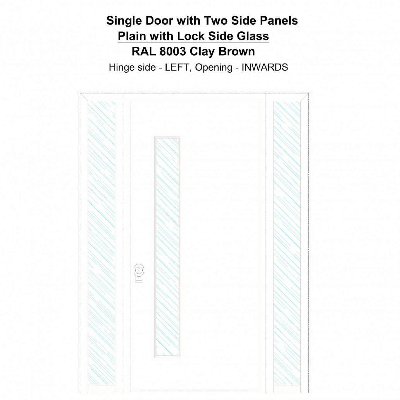Single Door with Two Side Panels Plain with Lock Side Glass Clay Brown Security Doors
